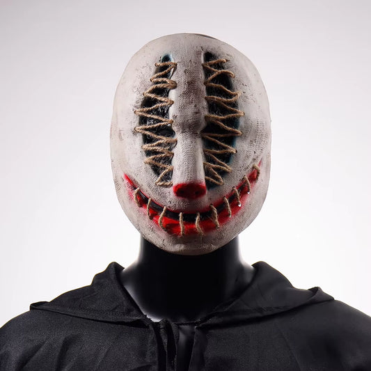 • Horror White Face Eyes Exorcist Mask Halloween Mask Smiling Demon Scary Cosplay Mask for Halloween Party Adult Photo Props