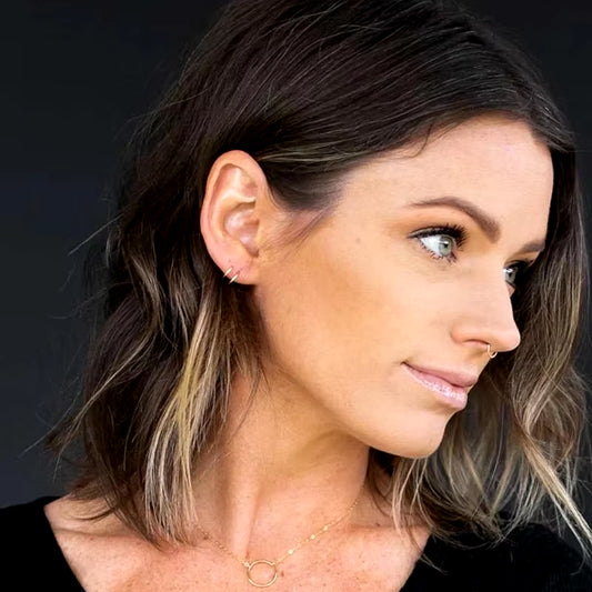 • Faux Fake Double Spiral Hoop Earrings for Women Gold Plated Black Spinning Threader Earring Minimalist Jewelry Tarnish Free