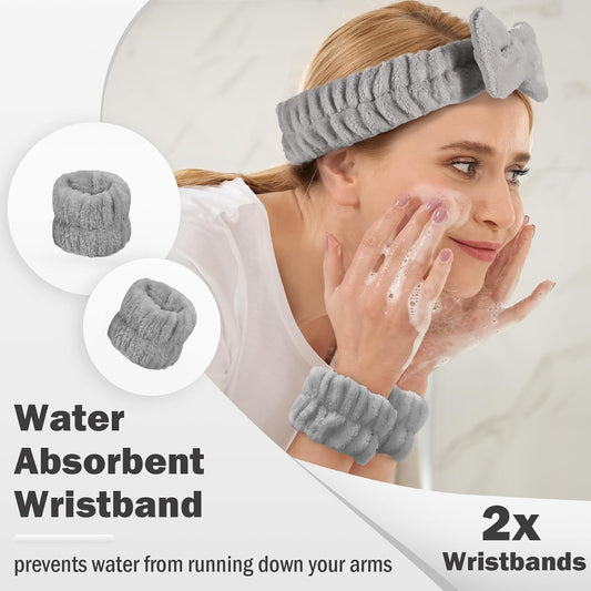 • 9 Pack Spa Headband Wristband Set, Bow Hair Band for Washing Face Facial Makeup
