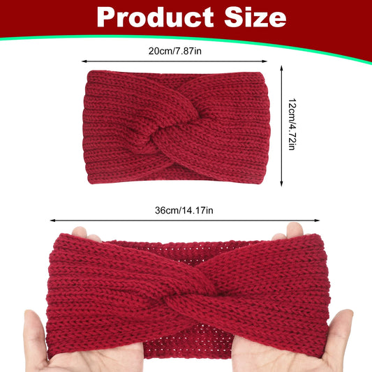 4 Pcs Ear Warmers Headband, Knit Headbands for Women, Ear Wraps for Women, Winter Ear Warmer, Twisted Elastic Turban Head Wrap with Bow Knot