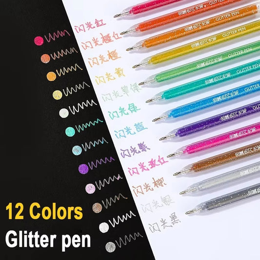 12Pcs/Set Gel Pen Set Glitter Gel Pens for School Office Adult Coloring Book Journal Drawing Doodling Art Markers Stationery Pen