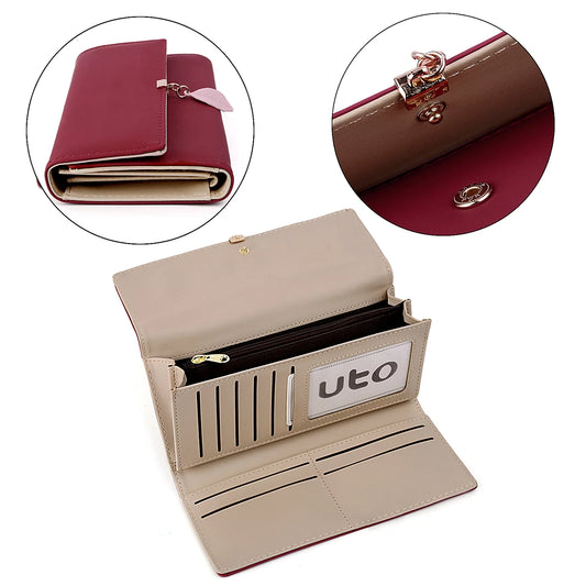 Womens Wallet PU Leather RFID Blocking Card Holder Elegant Zipper Coin Purse Leaf Pendant(Wine)